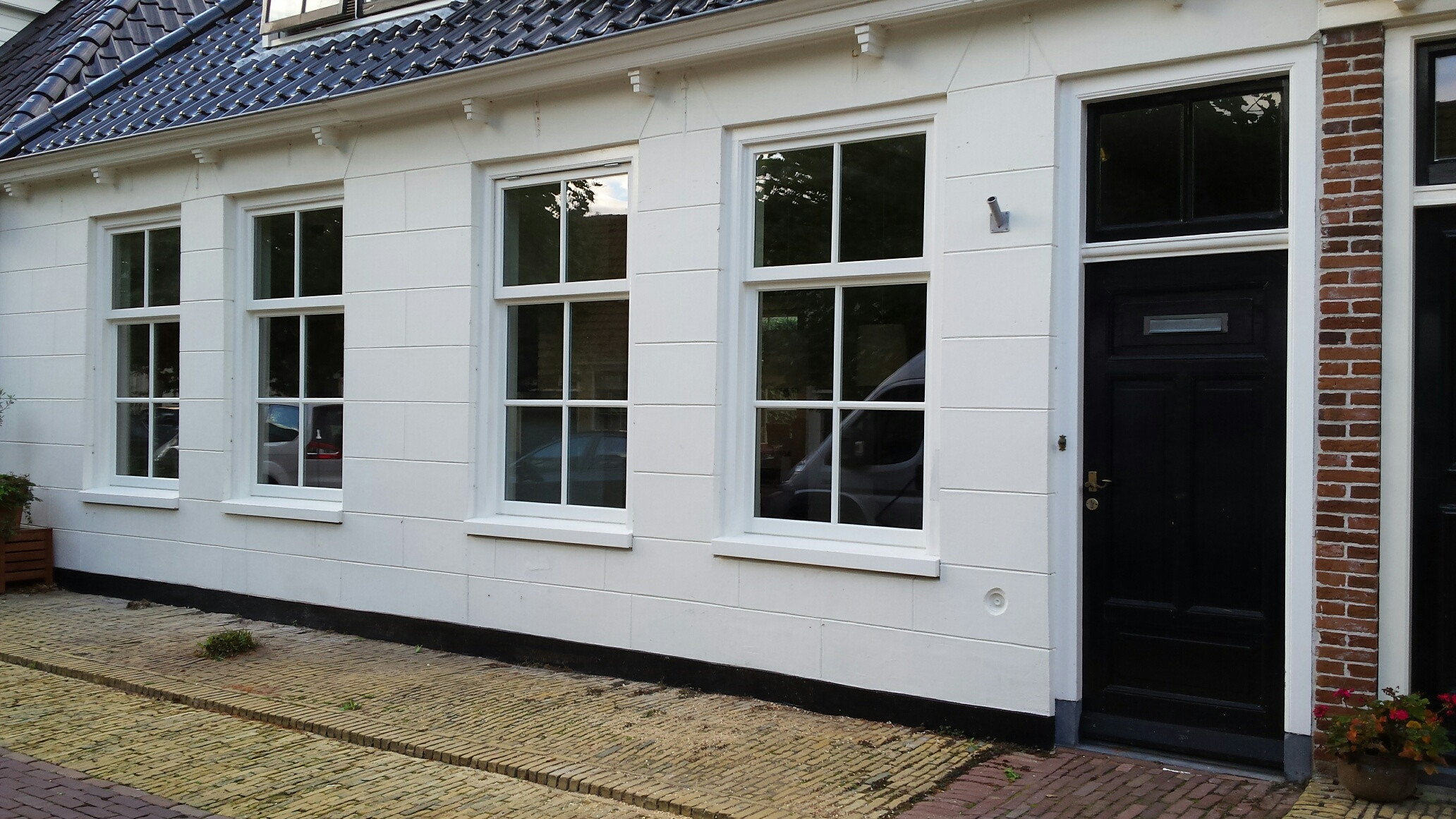 Ramen en deuren worden in onze werkplaats in de kozijnen afgehangen en voorzien van alle gewenste sluitwerk en beslag (schilden, krukken, enz.). Onze ramen worden standaard voorzien van een uitneembaar anti-tochtkader met folie, dat bescherming biedt bij het schilderen. Voor kozijnen op de verdieping is het draaikiepraam een uitkomst. Dit kunt u eenvoudig van binnenuit schoonmaken.
